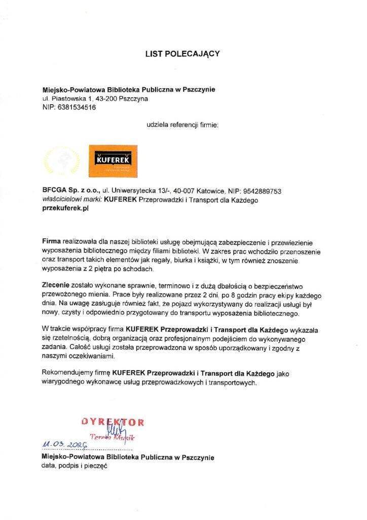 „Firma Kuferek jest bardzo rzetelną firmą. Znam to z własnego doświadczenia. Potrzebowałam transportu do Holandii. Duże firmy transportowe nie obsługują prywatnych osób. Więc zaczęłam szukać małej, znalazłam Kuferek. Dogadałam się. Mają bardzo dobrych kierowców. Meble dotarły bez szwanku. Więc bardzo polecam.